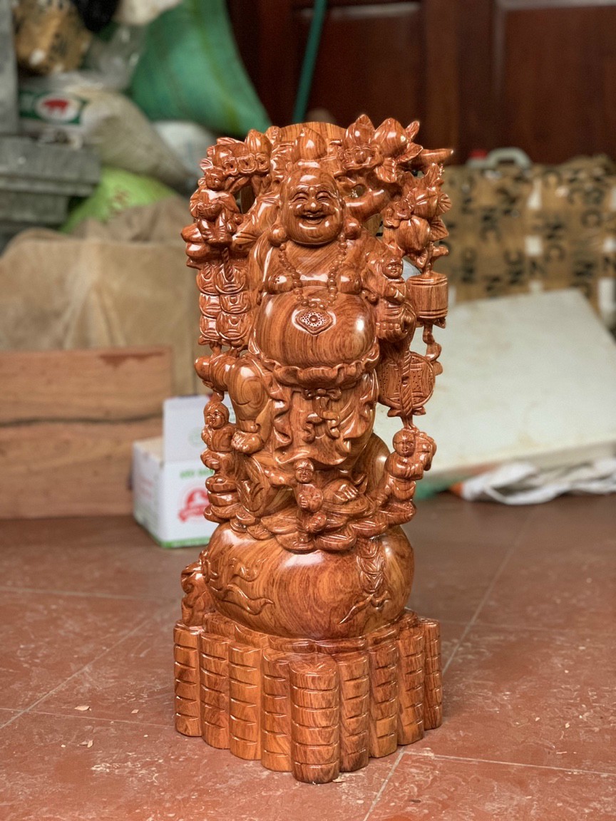 Mua tại TiktokTượng phật di lặc ngũ phúc được làm bằng chất liệu gỗ hương đá tự nhiên 100% Kích thước 60×26×15cm _ Tượng phật di lặc ngũ phúc được trạm khắc tỉ mỉ tinh sảo kỳ công ,Đi hầu hết mọi chi tiết góc ngách nội dung hoa văn của tượng ,Đều được ngọt tỉa ,Chỉnh sửa hoàn toàn bằng tay thủ công .Từ những người thợ dầy rặn kinh nghiệm ,Cũng như tay nghề cao trong làng nghề truyền thống .Chính vì thế tượng phật di lặc ngũ phúc đã đáp ứng đầy đủ những tiêu trí ( Đẹp bền rẻ ) Thẩm mỹ nghệ thuật với chất lượng tuyệt vời