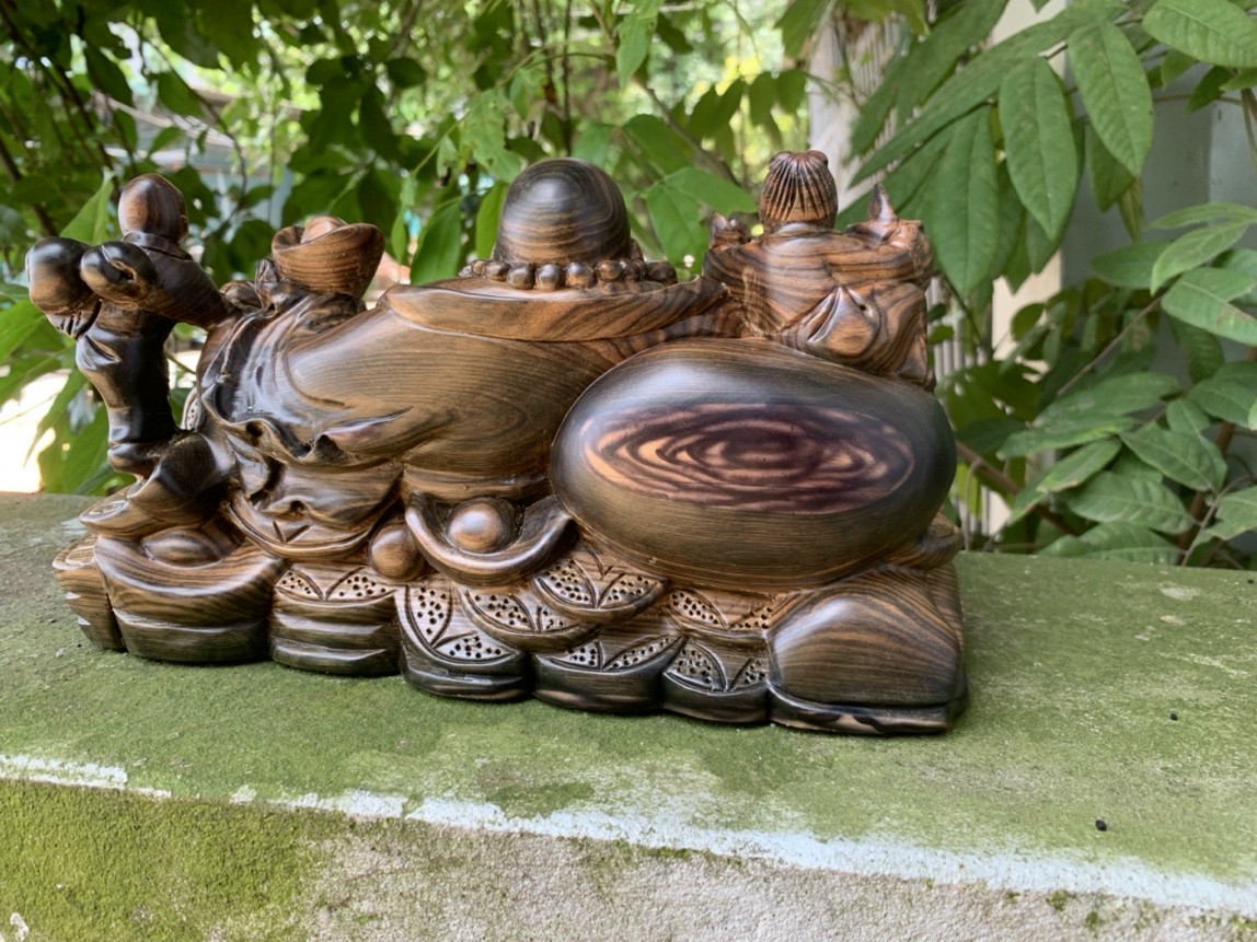 Tượng phật di lặc ngũ phúc được làm bằng chất liệu gỗ mun hoa tự nhiên 100%  Kích thước 30×15×15cm _ Tượng phật di lặc ngũ phúc được trạm khắc ởi mỉ ,tinh sảo kỳ công .Đi hầu hết tất cả mọi chi tiết góc ngách nội dung hoa văn của tượng đều được gọt tỉa chỉnh sửa hoàn toàn bằng tay thủ công .Đồng thời tượng được kiểm định kỹ ,lưỡng khắt khe .Như cho vào thẩm sấy cho gỗ khô kiệt .Mục đích trống dập nứt vênh mo mối mọt ,Kết hợp với trà nhám đánh giấy giáp nhiều nước ,sờ mát lạnh rồi cho vào phun lót làm bóng mờ để giữ lại mầu sắc vân gỗ tự nhiên ,Tượng được làm và hoàn thiện do bàn tay khối óc tài hoa ,Từ những người thợ giàu kinh nghiệm ,cũng như tay nghề cao trong làng nghề truyền thống ,Chính vì thế tượng phật di lặc ngũ phúc đã đáp ứng đầy đủ ,những tiêu trí ( Đẹp bền rẻ ) Thẩm mỹ nghệ thuật với chất lượng tuyệt vời