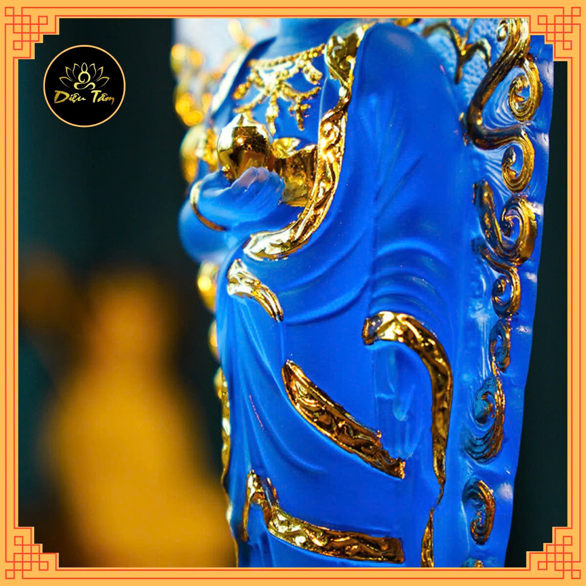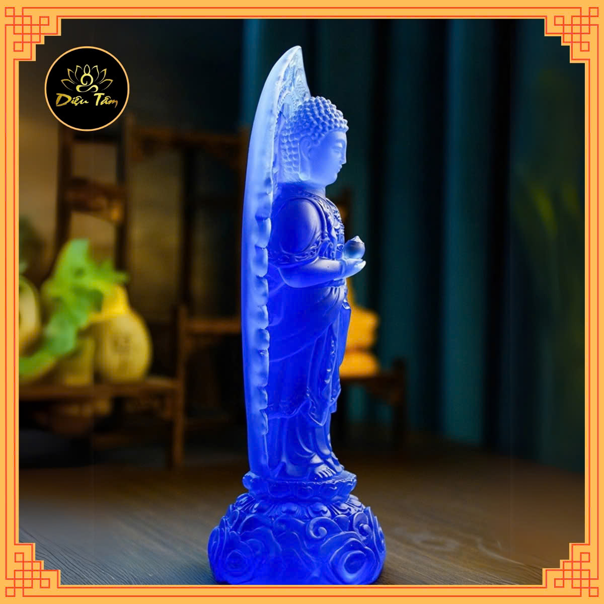 Tượng phật dược sư lưu ly tượng dược sư đứng hào quang xanh dương dát vàng trang trí 23cm phong thủy, thờ cúng Diệu Tâm - Tượng phật dược sư được chế tác thủ công - Tượng phật dược sư có kích thước như ảnh - Tượng phật dược sư làm bằng chất liệu composite giả lưu ly - Tượng phật dược sư có màu xanh dương dát vàng - Sản phẩm chỉ gồm tượng phật không gồm đôn đế, quý khách có thể mua thêm đôn đế, kệ ở shop Phật Dược Sư có lòng bi mẫn vô biên đối với tất cả chúng sinh. Phật Dược Sư hiểu và thông suốt tất cả các y dưpợc của thế gian và xuất thế gian, Ngài có thể chữa t.r.ị tất cả những b.ệ.n.h khổ của chúng sinh, những điên đảo vọng tưởng do tham, sân, si phiền não gây nên. Chính vì vậy tượng phật dược sư là một trong những tượng phật được các gia chủ ưa chuộng nhất lựa chọn để thờ cúng trên bàn thờ. - Những lý do bạn nên thỉnh tượng dược sư Phật Dược sư có thể chữa t.r.ị các loại b.ệ.n.h của chúng sinh Thần chú Phật Dược sư mang năng lực chữa lành Thỉnh nguyện phật Dược sư sẽ giúp bạn nhận được sự ban phước từ Ngài Ngắm tượng phật Dược sư giúp bạn tăng trưởng tín tâm vào Ngài Phật Dược sư có 12 đại nguyện cứu độ chúng sinh - Hướng dẫn vệ sinh tượng phật dược sư Bạn không nhất thiết phải lau tượng mỗi ngày. Chỉ khi nào nhận thấy tượng Phật Dược Sư bị khói bụi bám vào thì mới “tắm” tượng. Dùng một chiếc khăn sạch mới tinh lau tôn tượng theo hướng từ trên xuống cho đến khi sạch sẽ. Không nên xức các loại nước hoa thơm cho tượng Phật Dược Sư. Vì đó là những sản phẩm với hương vị đặc thù tạo ra sự dính mắc, trói buộc và mê đắm cho thế gian, nói chung là “mùi thơm bất tịnh”. #phongthuy #dothocung #bantho #tuongluuly #tuongphat #dophongthuy #dieutam #tuongduocsu #duocsu #trangtri #tuongphatduocsu #duocsuluuly #duocsuluulyquang #mattong