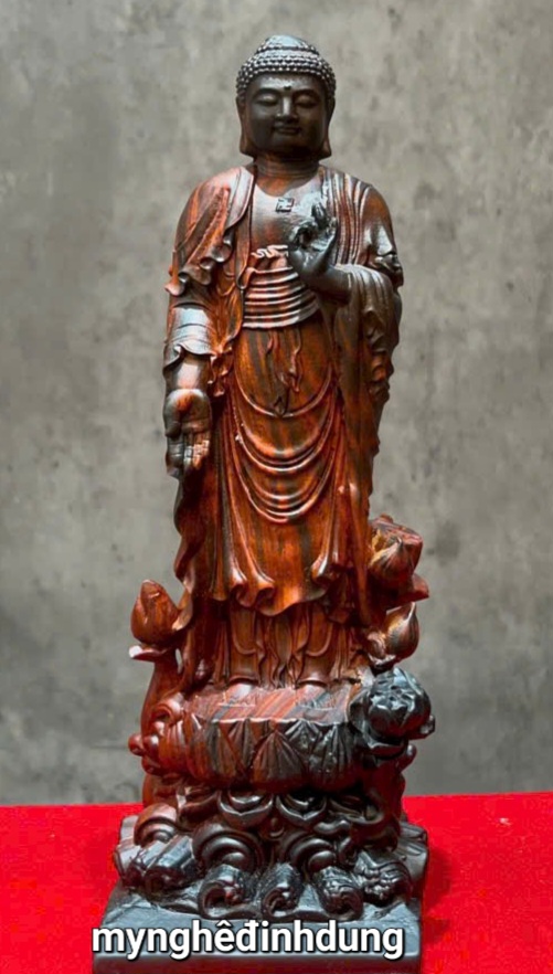 ✨Tượng phật liên hoa bằng gỗ trắc đỏ đen vip cao 20x8x7cm