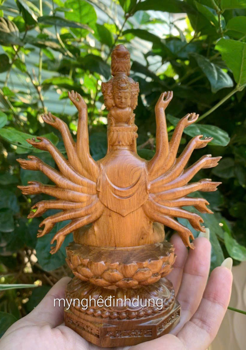 ✨Tượng phật thiên thủ thiên nhãn ngài nghìn mắt nghìn tay bằng gỗ bách xanh thơm nức kt cao 15x11x6cm