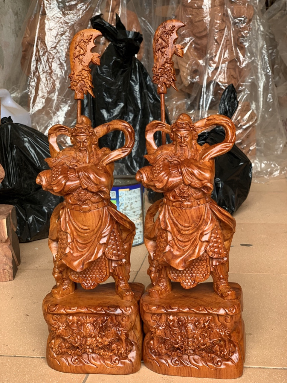 Tượng Quan Công đứng cầm đao cao 80cm | Quan Thánh gỗ hương đứng trấn ải