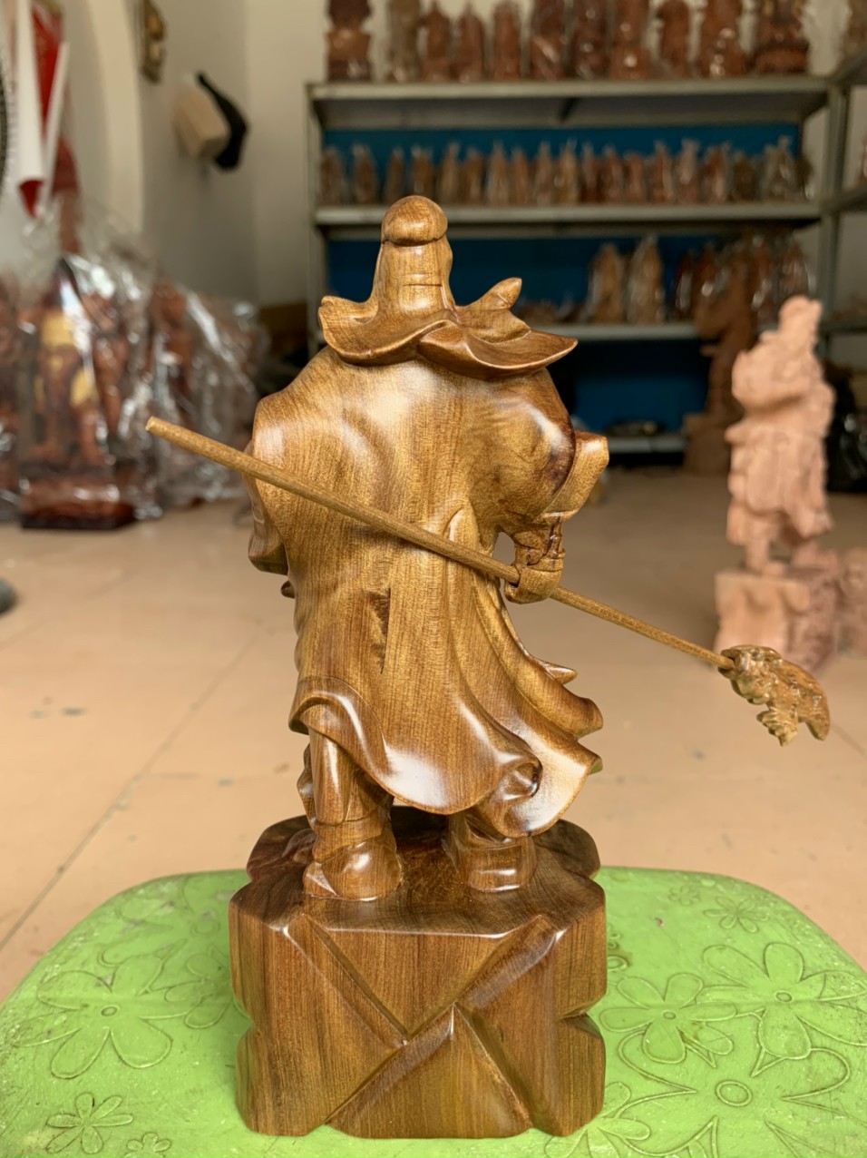 _ Tượng quan công cầm đao trấn ải được làm bằng chất liệu gỗ bách xanh liền khối tự nhiên 100% _ Kích thước cao 20×8×6cm _ Tượng quan công được trạm khắc tỉ mỉ