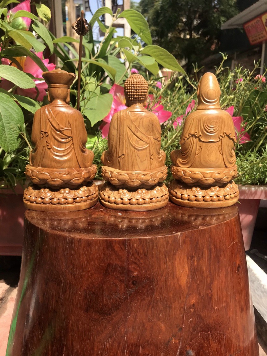 ✨Tượng tây phương tam thánh mini bằng gỗ bách xanh thơm nức kt cao 15×9cm