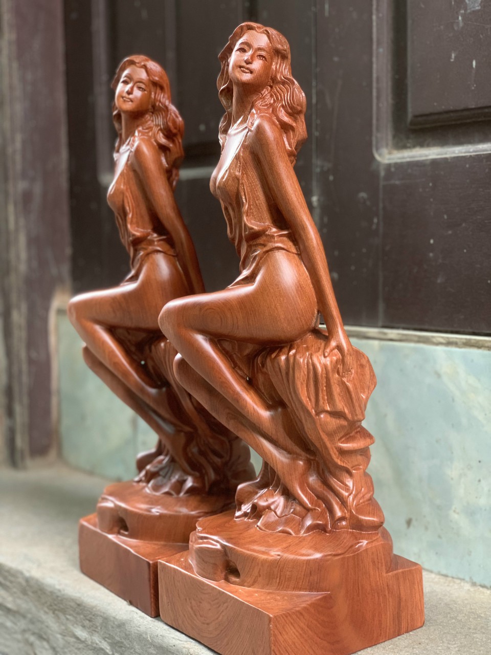 ✨Tượng thiếu nữ nghệ thuật trang trí bằng gỗ hương kt cao 40cm