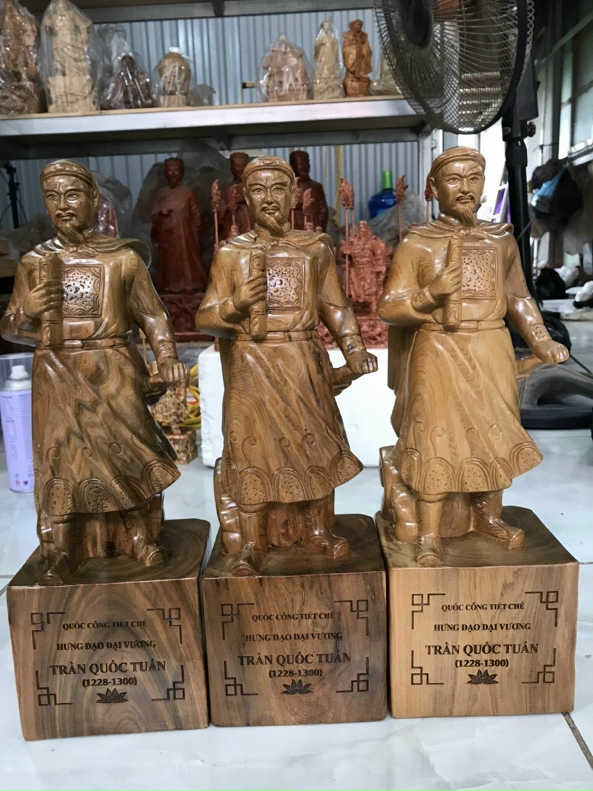 Tượng trần quốc tuấn được làm bằng chất liệu gỗ bách xanh tự nhiên 100% Kích thước cao 30×12×8cm _ Tượng trần quốc tuấn được làm và hoàn thiện do bàn tay khối óc tài hoa ,Từ những người thợ giàu kinh nghiệm ,Cũng như tay nghề cao trong làng nghề truyền thống ,Chính vì thế tượng điêu khắc trần quốc tuấn .Đã đáp ứng đầy đủ những tiêu chí (đẹp bền rẻ ) Thẩm mỹ nghệ thuật với chất lượng tuyệt vời