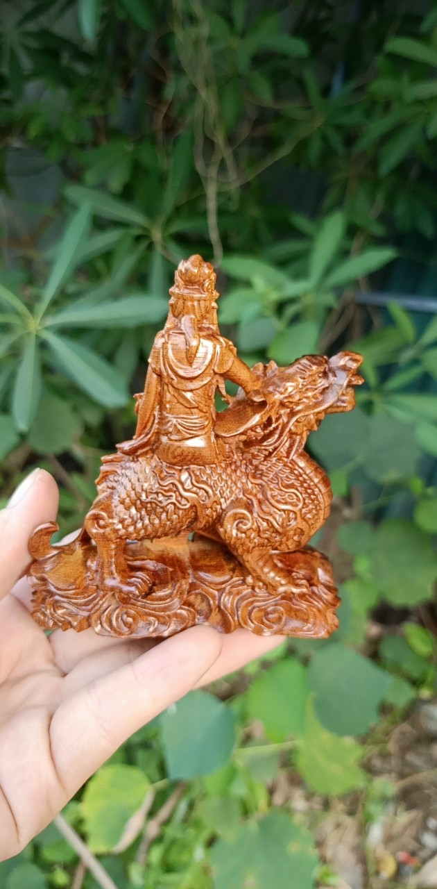 ✨Tượng văn thù phổ hiền bồ tát bằng gỗ bách xanh thơm nức kt 16×15×6cm