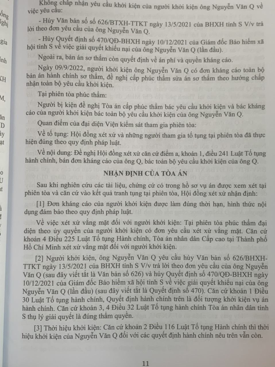 Phần thứ nhất. Các Bản án của Tòa án nhân dân cấp cao về hành chính
