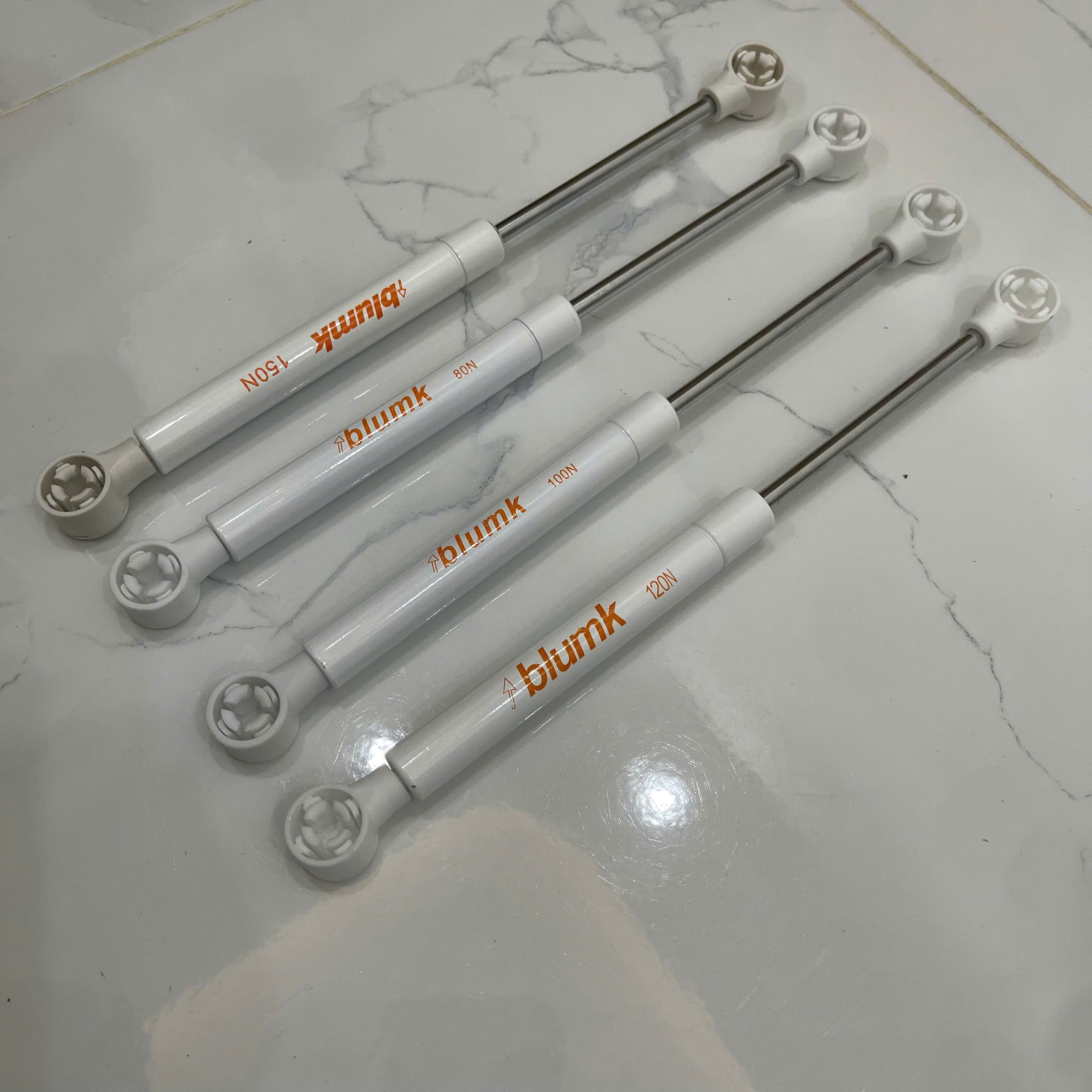 - Tay nâng PISTON giảm chấn Chính hãng Blumk có các lực 80N- 100N- 120N - 150N ...để bạn có thể lựa chọn tay nâng hợp với cánh tủ.