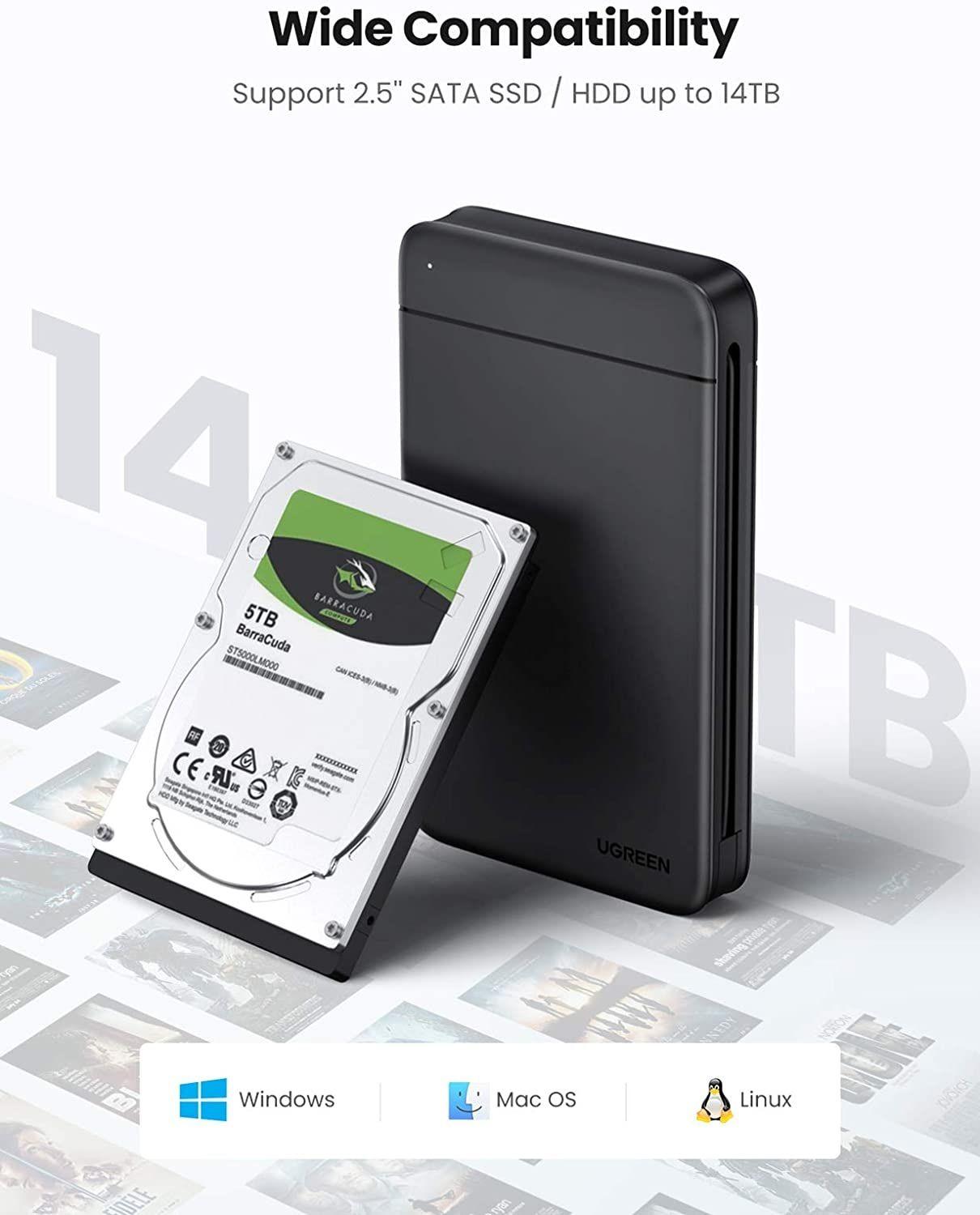 - UGREEN HDD & SSD cover is compatible with HDD & SSD 2.5 "with SATA port 5.17.8 x 11.1 x 2.3 cm