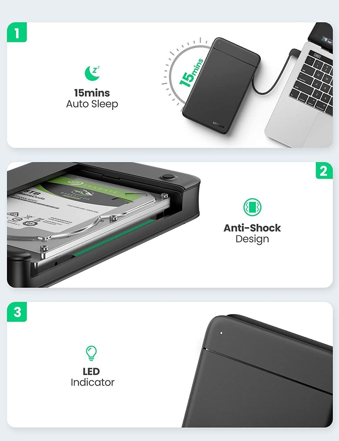 Box UGREEN chuyển SSD / HDD 2.5 inch – SATA sang USB 3.0 / Type C, Ugreen 30848, Ugreen 60734.