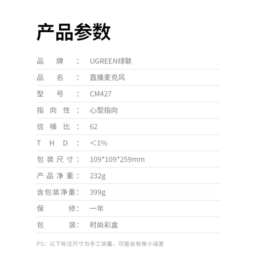 1. Thương Hiệu : UGREEN 2. Mã : 10934 - CM379 3. Loại : Micro để bàn 4. Chiều dài cáp : 1M 5. Màu : Đen 6. Chuẩn kết nối : USB 7. Chất