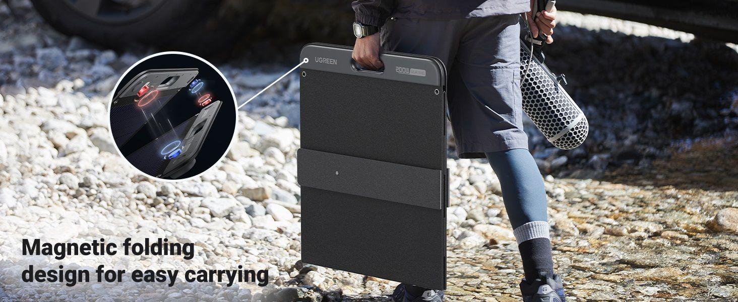 Tấm Pin Năng Lượng Mặt Trời 200W Gấp Gọn, Di Động Ugreen 15114 đơn tinh thể Mono