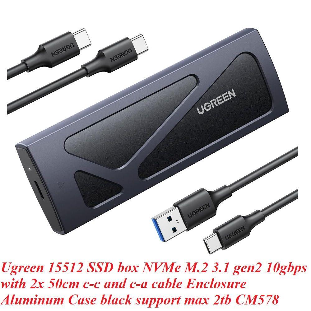 ✨Ugreen UG15512CM578TK NVME USB type C 3.1 Gen2 tốc độ 10Gbps có kèm 2 cáp A-C + C-C dài 0.5M - hỗ trợ SSD 2Tb - Vỏ nhôm Box đọc ổ cứng SSD M.2 Màu Đe - HÀNG CHÍNH HÃNG