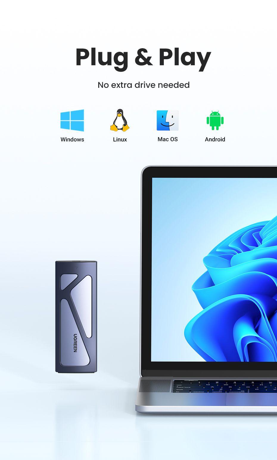 1. Color: Silver - Silver 2. Connection cable length: 50CM 3. Data Cable: Micro USB 3.0 to USB 3.0 4. SSD Interface: B key, B&M Key 5. SSD Protocol: NGFF SATA 6. Support data transfer