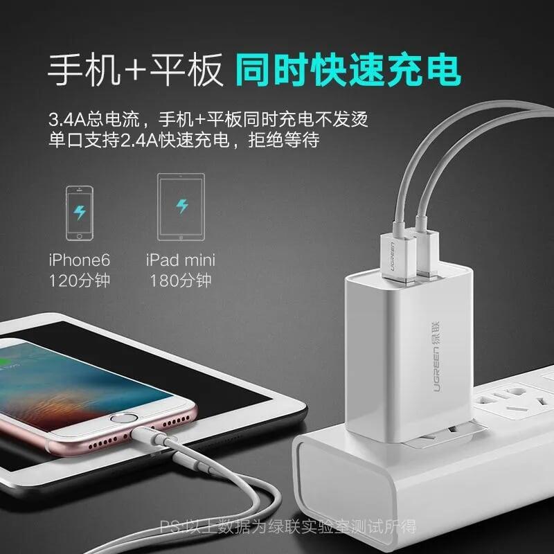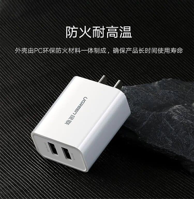✨Ugreen UG20328CD104TK Màu Trắng Bộ sạc nhanh 2 cổng USB 5V/2.4A + 1A - HÀNG CHÍNH HÃNG
