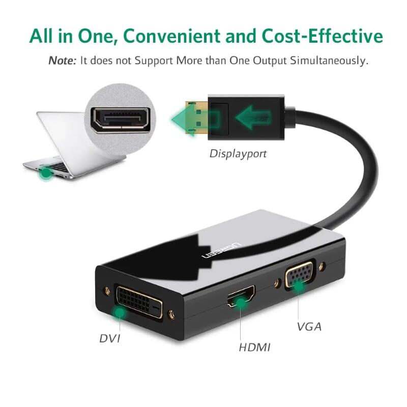 Cáp chuyển đổi Displayport to HDMI + VGA + DVI hỗ trợ full HD , 3D 4K,2K Ugreen 20420