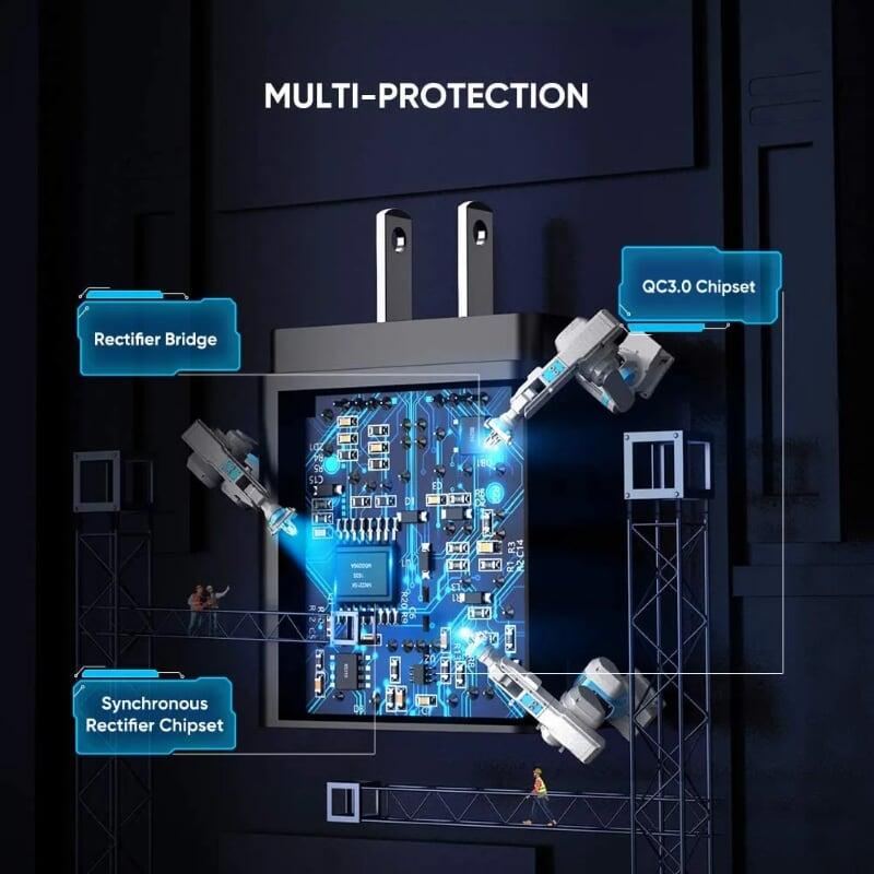 1. 2 USB Ports Charger 36W 2. PD3.0 / QC3.0 3. Support all devices 4. Automatically disconnects, and at the same time has some protection against overcharging and overvoltage 5. 10 x 10 x 5