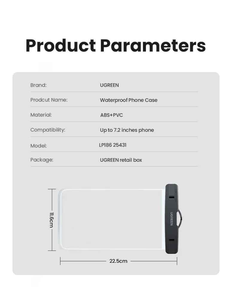 ✨Ugreen UG25431LP186TK 7.2inch IPX8 sâu 30M Bao đựng điện thoại chống nước chất liệu nhựa trong suốt - HÀNG CHÍNH HÃNG