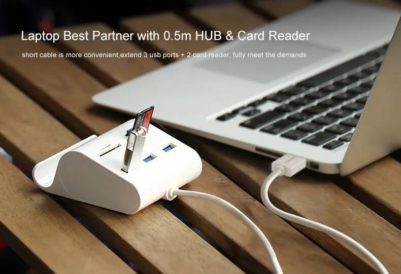 Ugreen 30344 1m màu trắng usb 3.0 3 ports hub + card reader with cradle us156 1. Support TF/SD/MS/CF card 2. Color : White 3. Length: 1m 4. 250g 5. 20 x 20 x 5