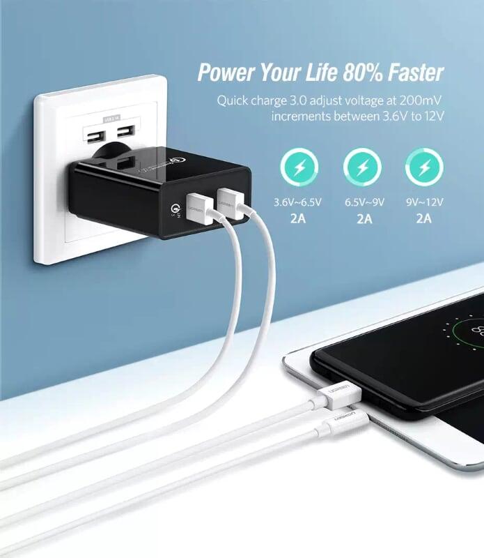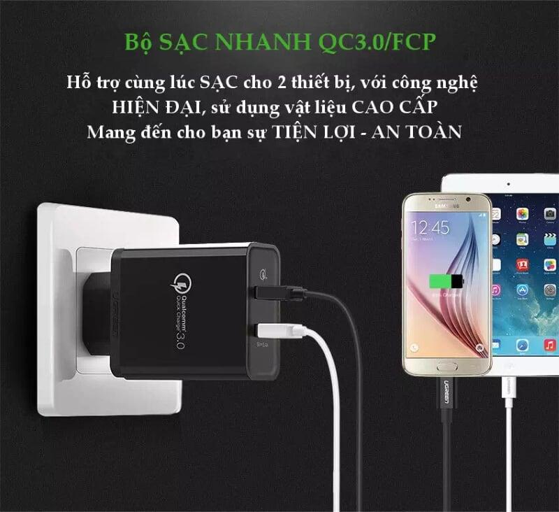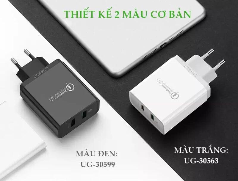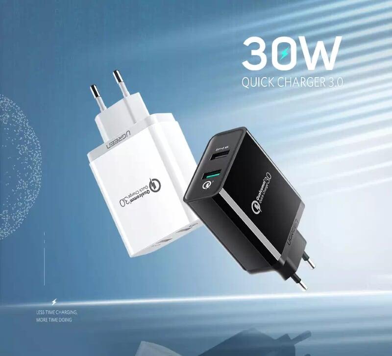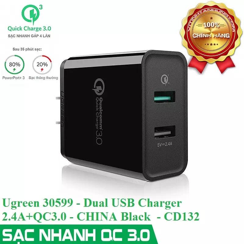 ✨Ugreen UG30599CD132TK 30W màu Đen Củ sạc nhanh 2 cổng USB chuẩn QC 3.0 + 2.4A - HÀNG CHÍNH HÃNG