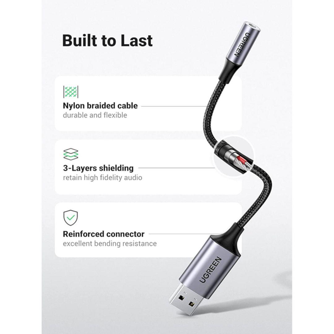 ✨Ugreen UG30757CM477TK 25cm USB 2.0 to 3.5mm Audio Adapter Aluminum Alloy Dark Gray Support Mic TRRS Headphone DAC Chip - HÀNG CHÍNH HÃNG