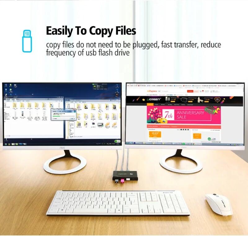 Review Bộ KVM USB | Chia sẻ 4 cổng USB 3.0 cho 2 máy tính cao cấp Ugreen 30768