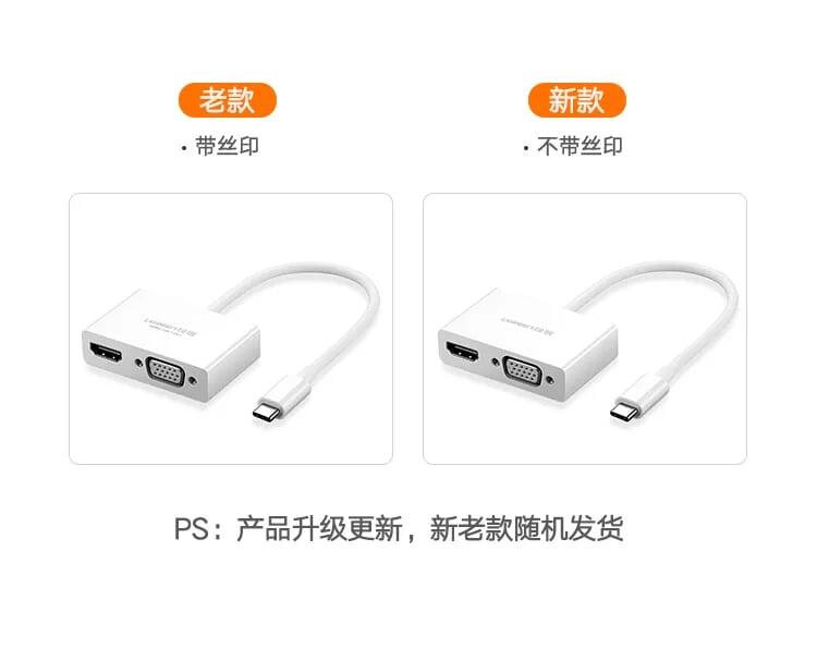 ✨Ugreen UG30843MM123TK 15CM màu Trắng Bộ chuyển đổi TYPE C sang HDMI + VGA vỏ bọc nhựa ABS - HÀNG CHÍNH HÃNG