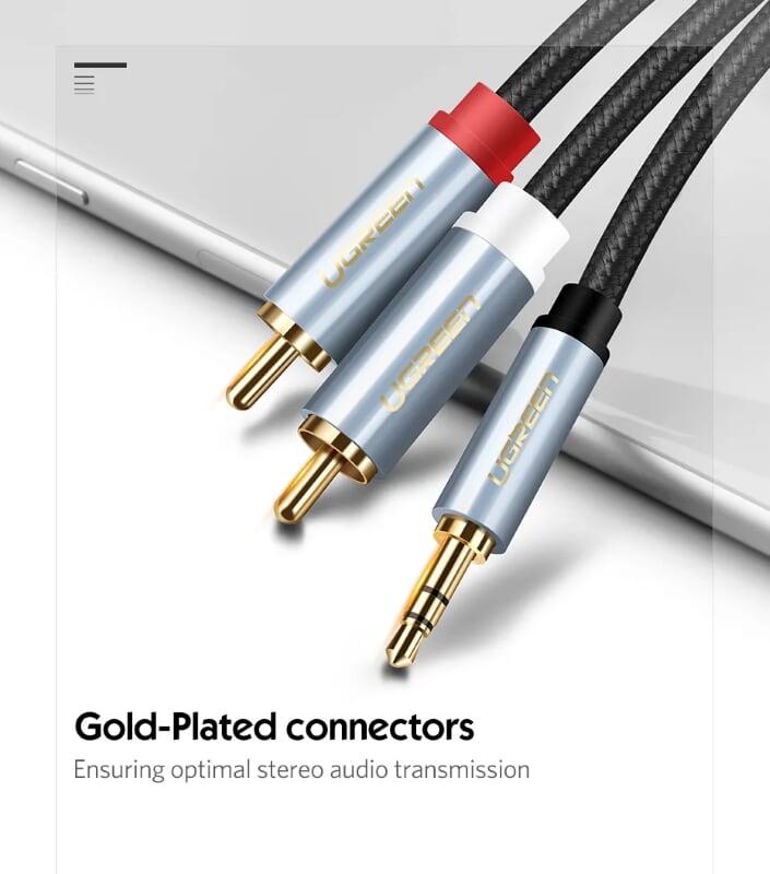 - Cáp Chuyển Đổi Ugreen 3.5mm Sang 2 RCA 10511 (1.5m) được dùng để kết nối từ điện thoại, máy tính, máy nghe nhạc… đến các thiết bị âm thanh có chuẩn RCA (hoa sen)