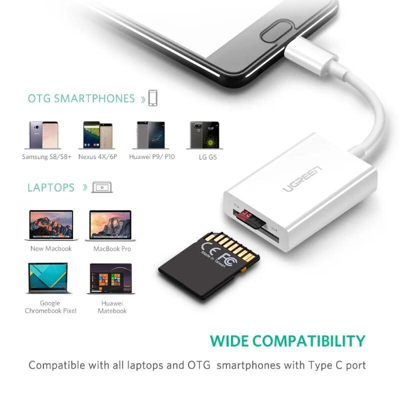 Đầu đọc thẻ USB Type-C cho thẻ nhớ SD/TF chính hãng Ugreen 50704