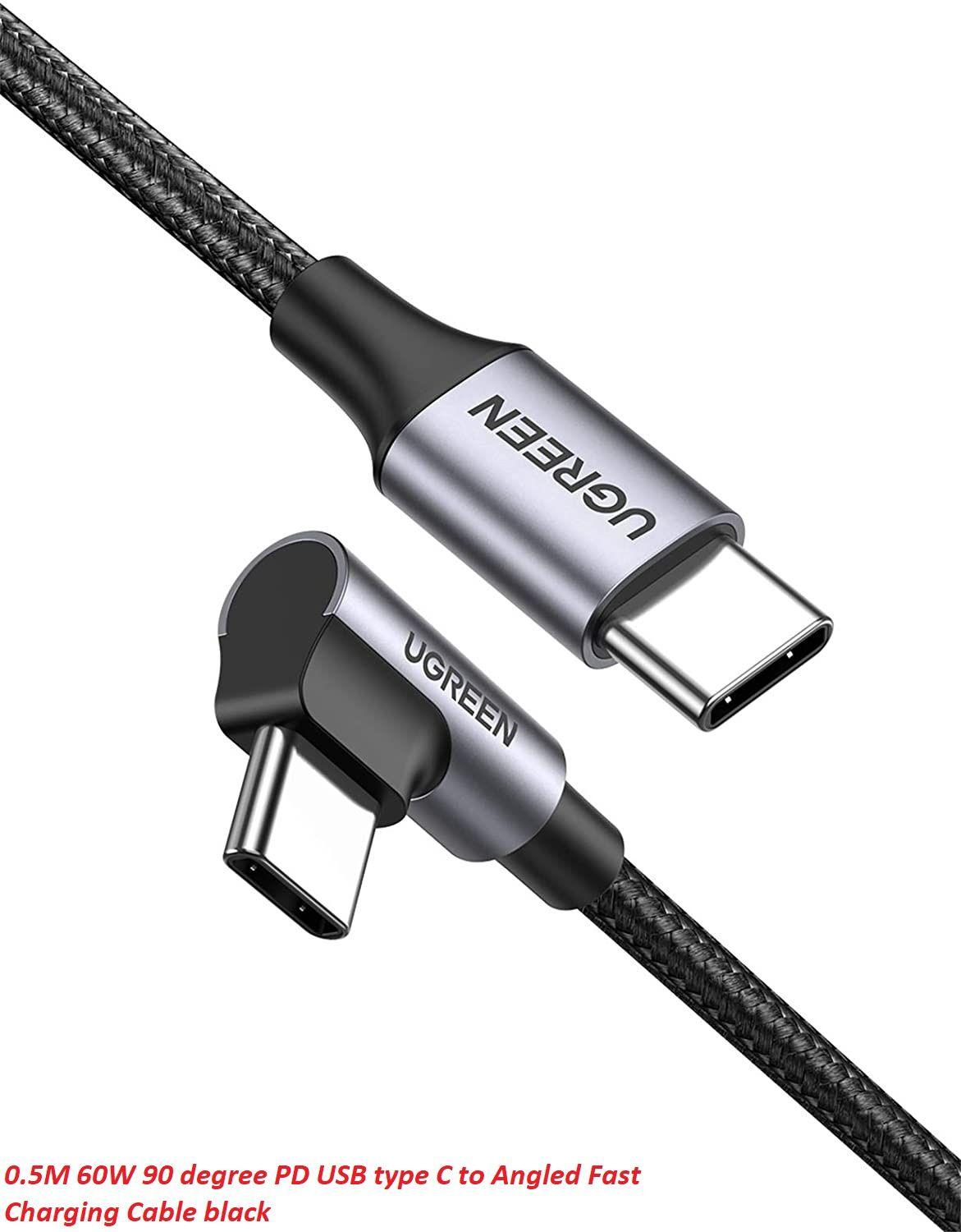 ✨Ugreen UG50122US255TK 0.5M 60W bẻ góc 90 độ hỗ trợ sạc nhanh PD cáp USB type C màu đen mạ nickel đầu bọc nhôm - HÀNG CHÍNH HÃNG