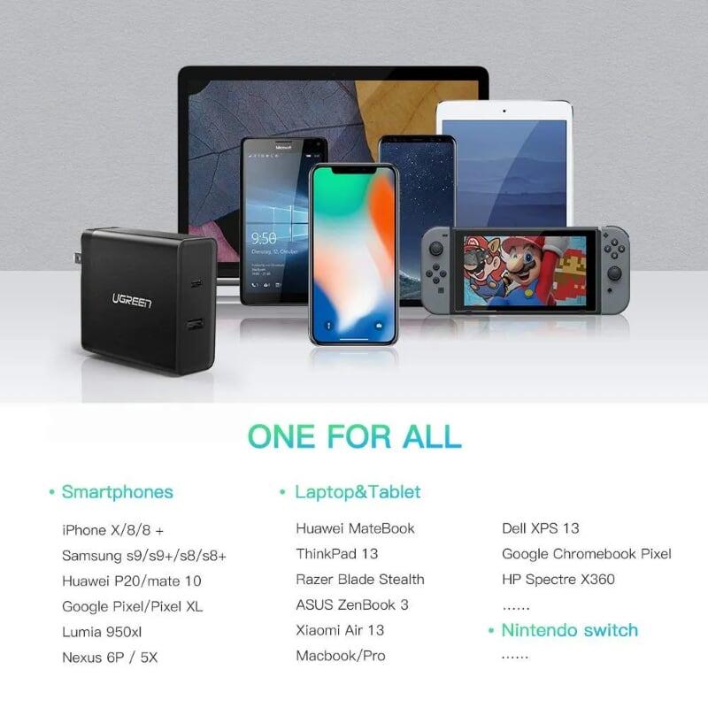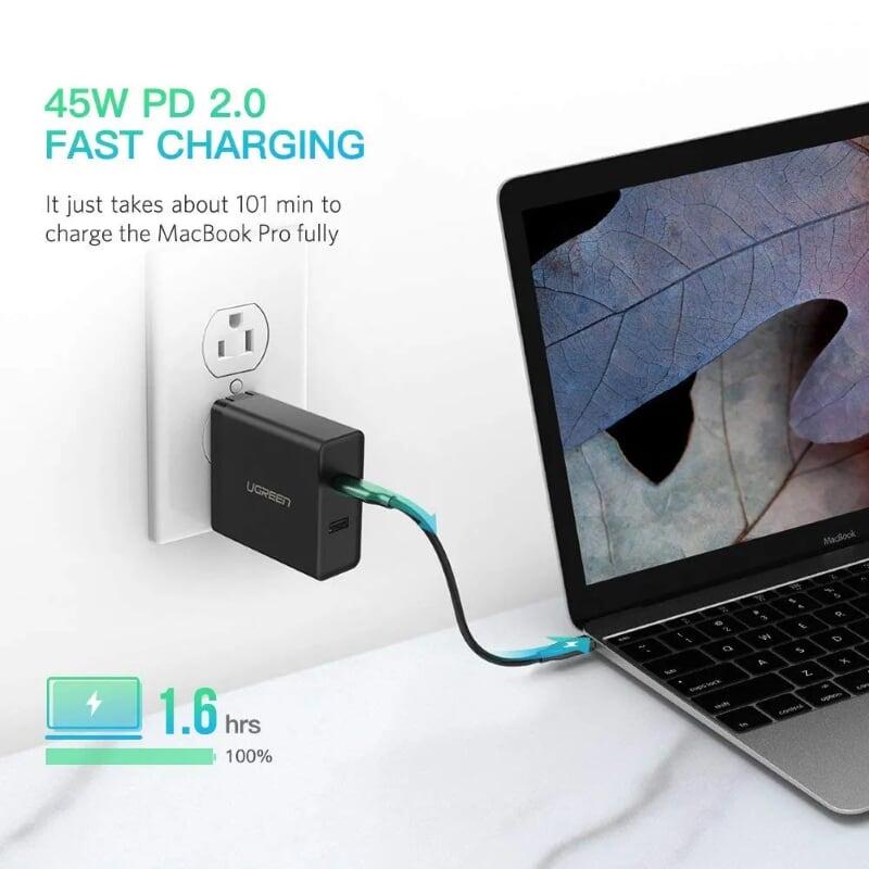 ✨Ugreen UG50457CD172TK 45W PD củ sạc nhanh usb type C và usb type A màu đen - HÀNG CHÍNH HÃNG