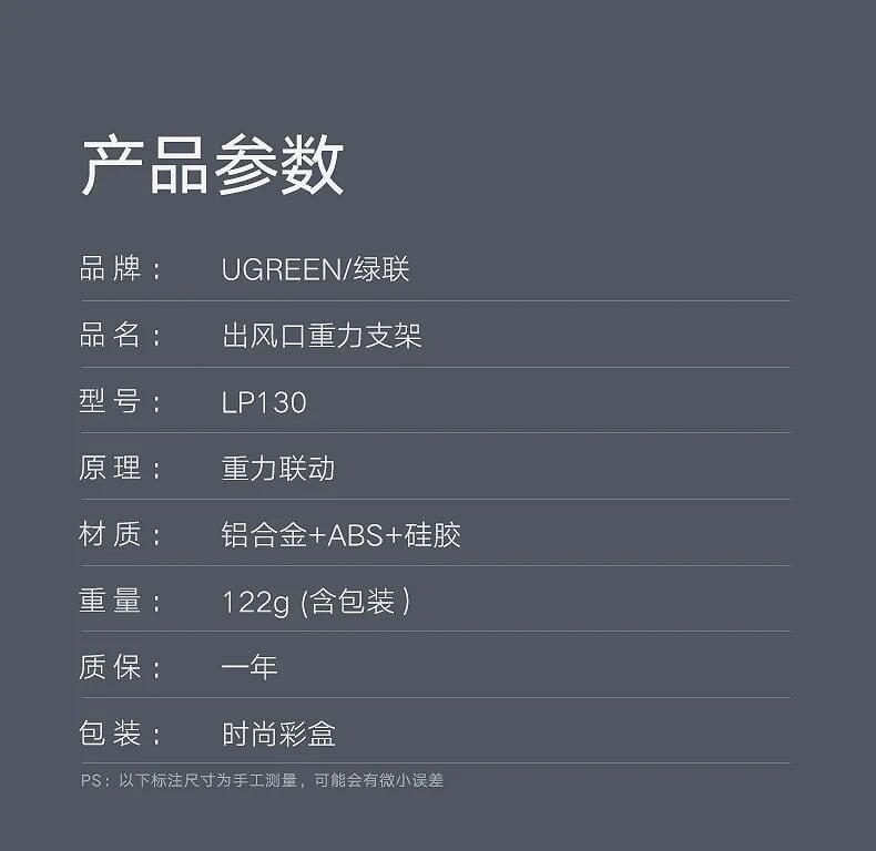 1. Hãng sản xuất: Ugreen 2. Mã: 80539 – LP228 3. Khung vô hình trọng lực, hỗ trợ năm điểm, ổn định và an toàn 4. Hoạt động bằng một tay, kẹp khi đặt xuống,