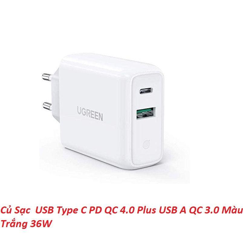 ✨Ugreen UG60468CD170TK 36W sạc USB A và type C màu trắng chuẩn QC3.0 - 4.0 - HÀNG CHÍNH HÃNG