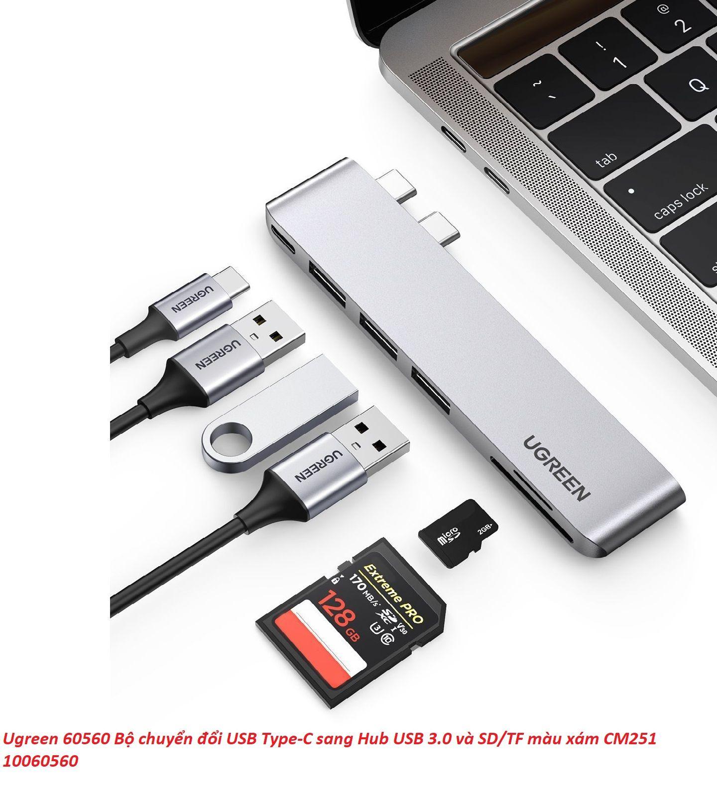 ✨Ugreen UG60560CM251TK macbook pro air 2 cổng USB Type C Bộ chuyển đổi sang 3x Hub USB 3.0 + SD/TF + nguồn PD màu xám bằng nhôm - HÀNG CHÍNH HÃNG