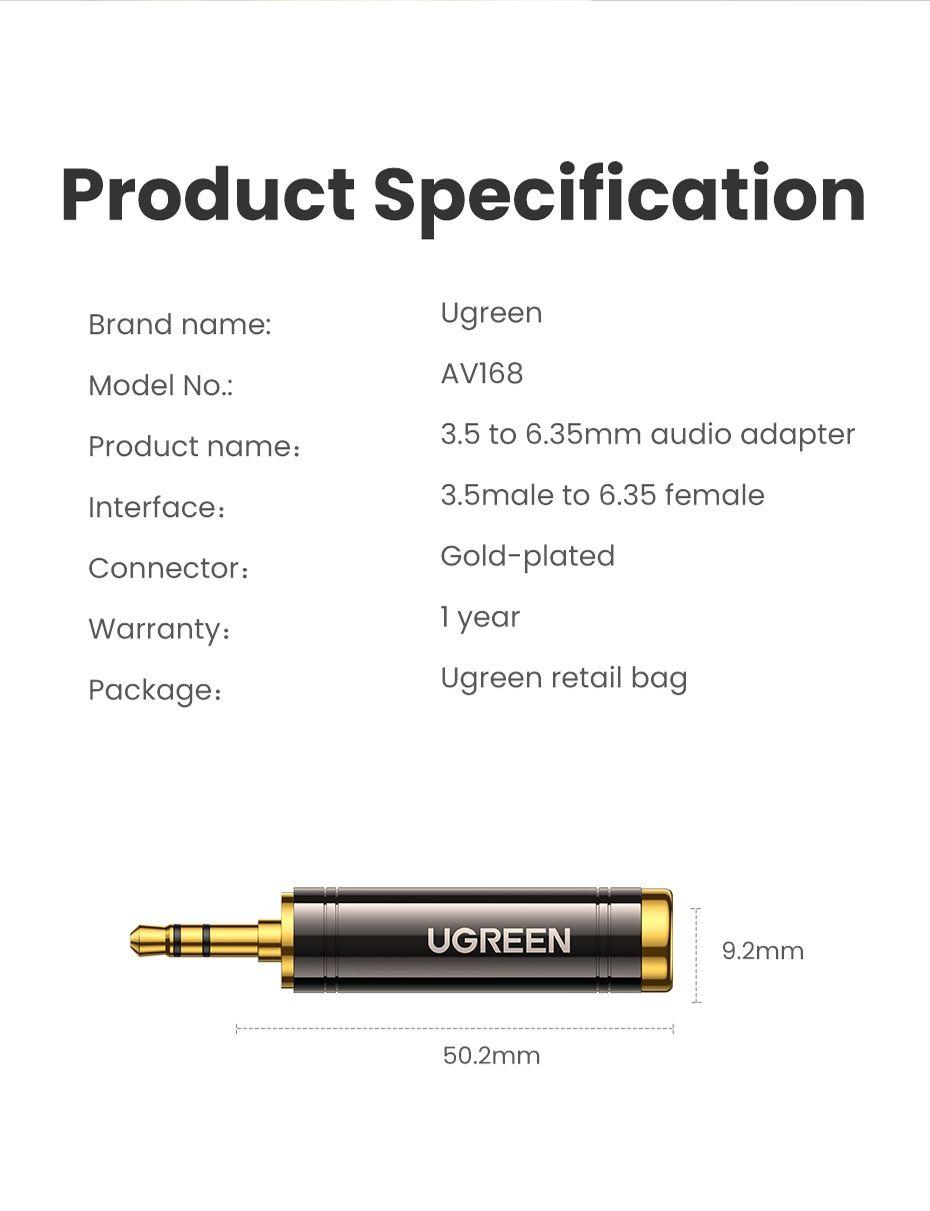 ✨Ugreen UG60711AV168TK 3.5mm đực sang 6.5mm cái Đầu Jack chuyển Audio - HÀNG CHÍNH HÃNG