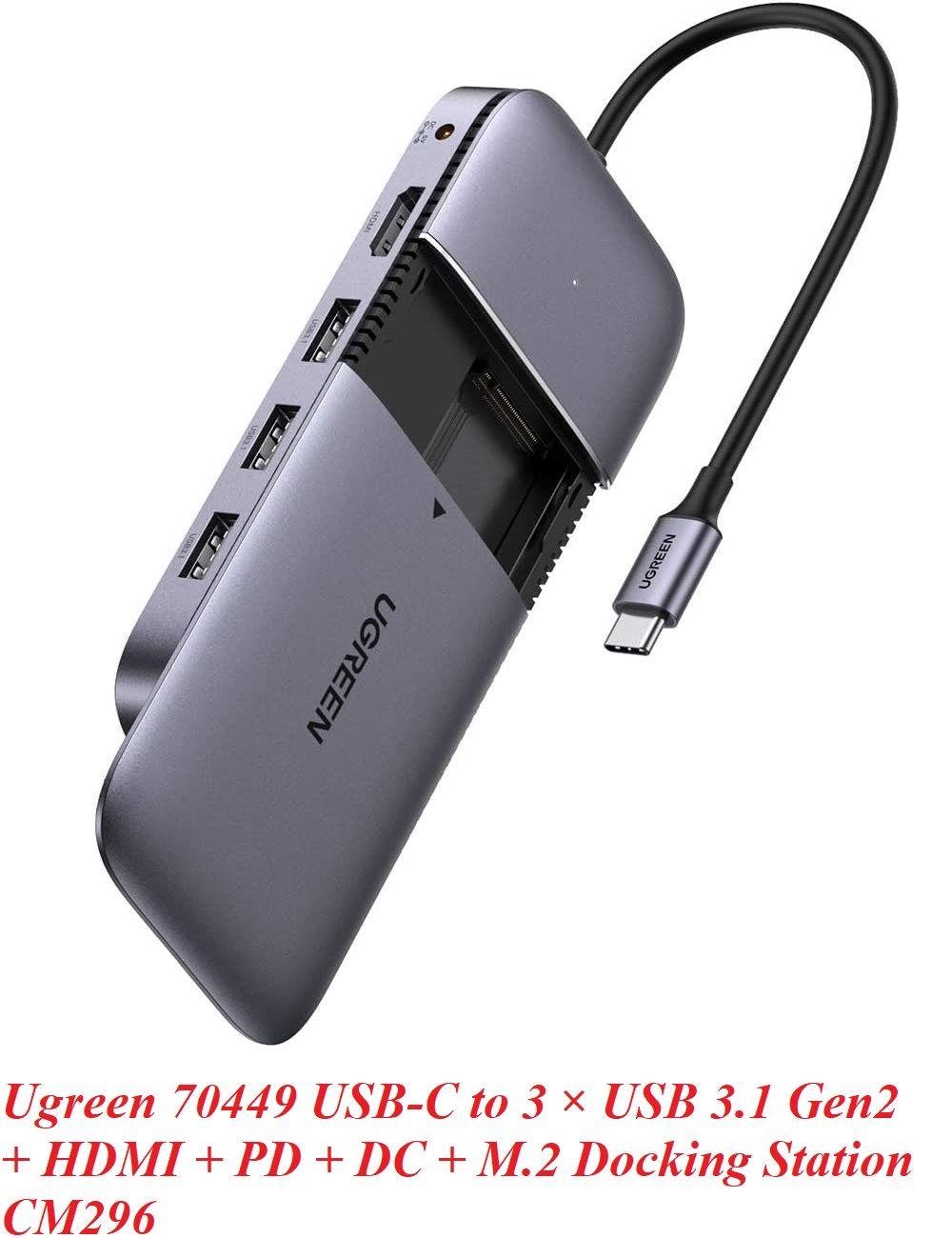 ✨Ugreen UG70449CM296TK bộ chuyển USB type C ra 3 × USB 3.1 Gen2 + HDMI + PD 100W + cấp nguồn DC + ssd M.2 NGFF Docking Station - HÀNG CHÍNH HÃNG