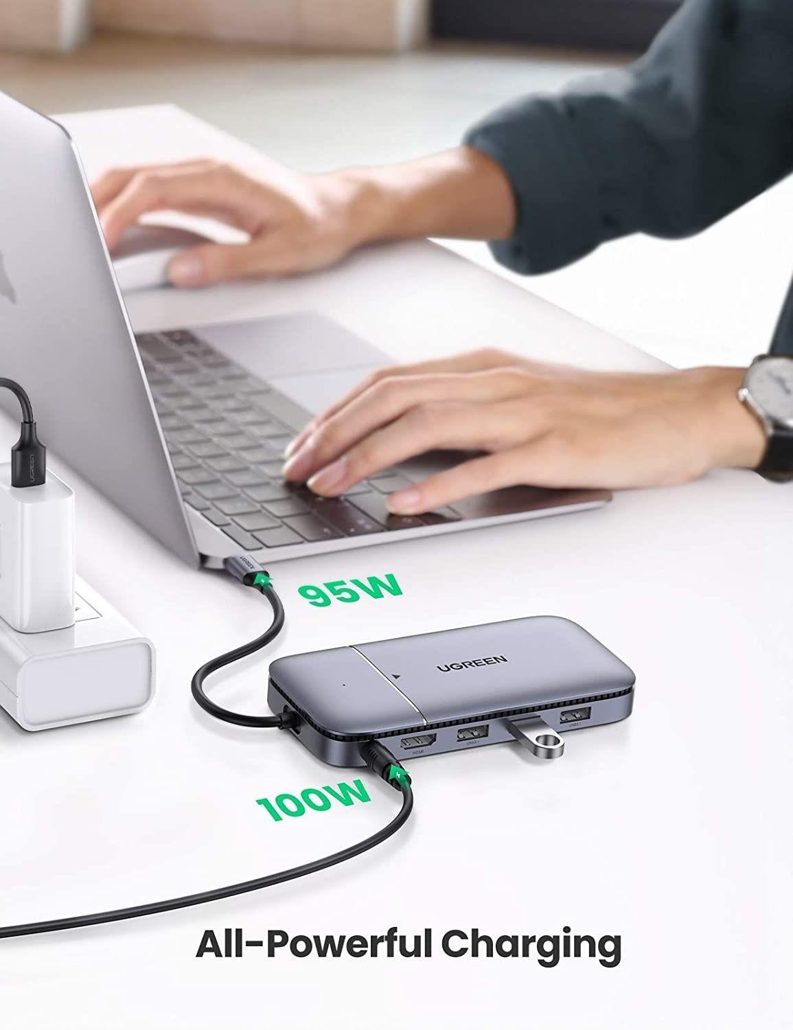 Ugreen 90325 USB type C to 1xusb A 10G + 1xusb-C 10G + 2xusb-A 5G + 2xHDMI 4K60Hz + DP + RJ45 Gigabit + SD/TF + 3.5mm Audio + PD Multifunction Docking Station MST for