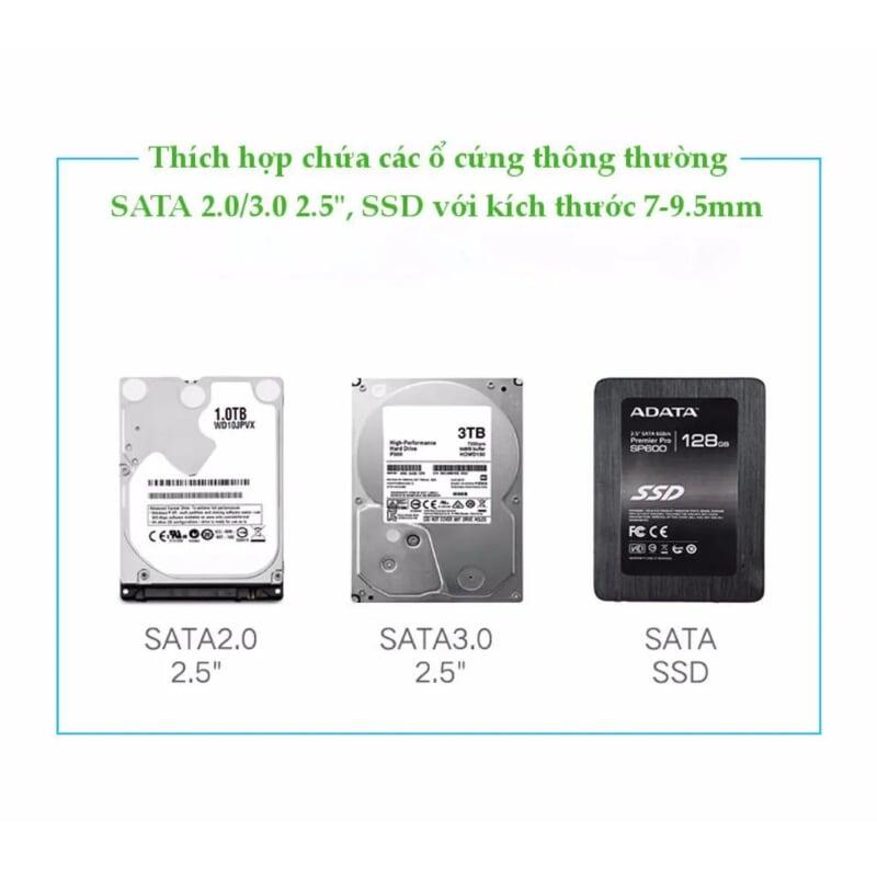Sản phẩm chỉ thích hợp với dạng ổ cứng ngoài chuẩn giao diện SATA. (Không thích hợp với dạng ổ cứng giao diện IDE).