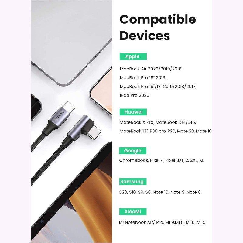 ✨Ugreen UG70643US334TK 1M 100w bẻ 90 độ cáp USB 2 đầu type C màu đen góc vuông bọc nhôm dây dù chống nhiễu - HÀNG CHÍNH HÃNG