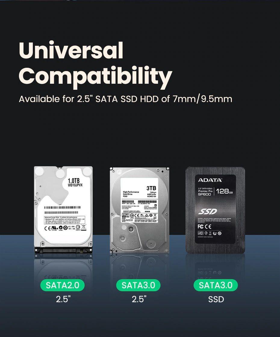 UGREEN HDD Caddy 9.5mm Universal SATA 3.0 HDD Caddy for 2.5" 5TB SSD Case Hard Disk Enclosure for Laptop DVD-ROM Optical Bay