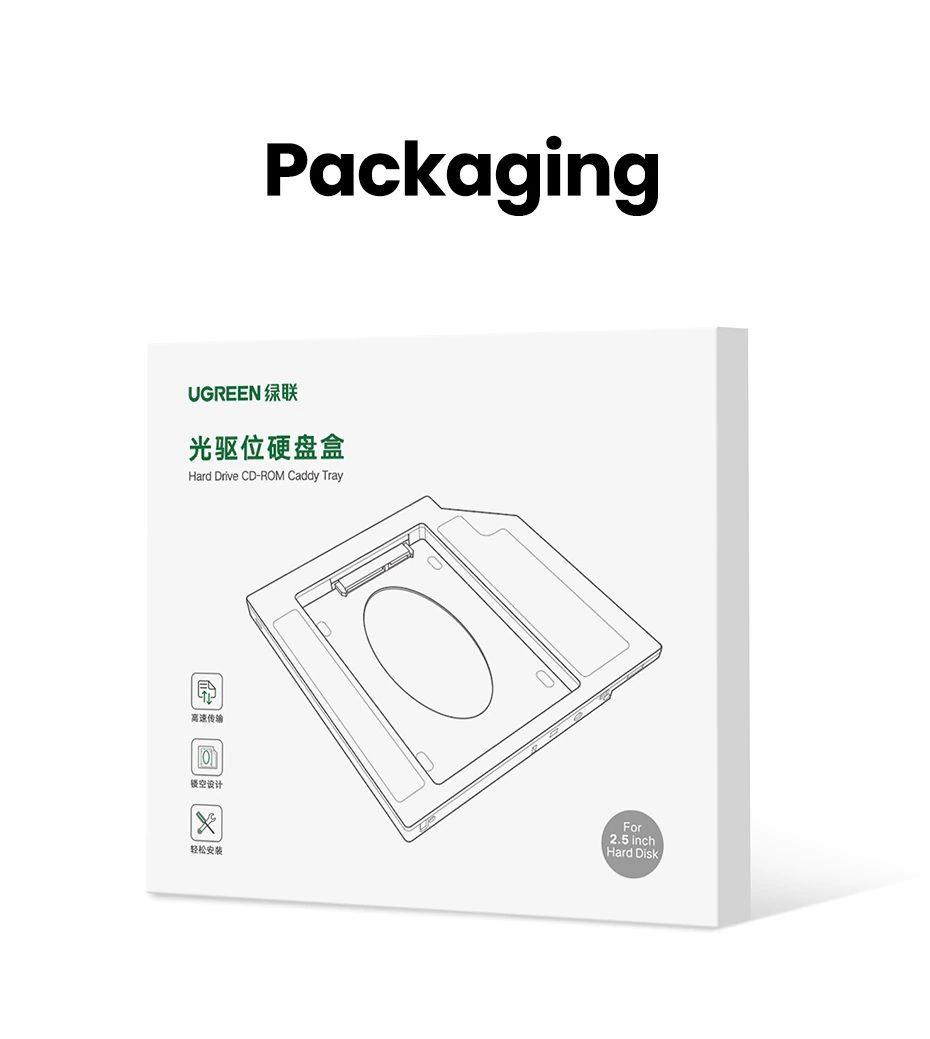 ✨Ugreen UG70657CM322TK 9.5mm caddy bay khay đựng ổ cứng và ssd 2.5inch sata mỏng gắn vào khe cd - dvd của laptop - HÀNG CHÍNH HÃNG