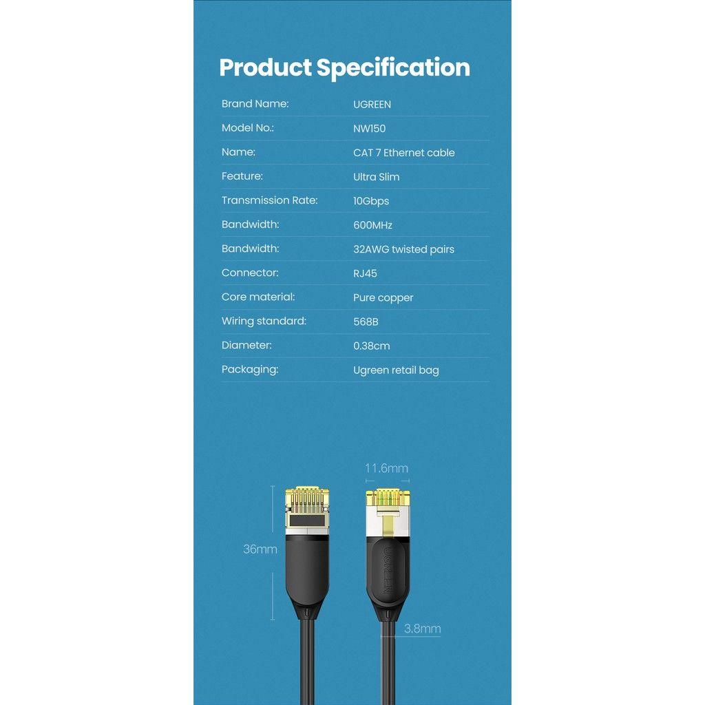 ✨Ugreen UG80415NW149TK 1M 10Gbps màu đen cáp mạng CAT7 siêu mỏng nhỏ 0.38mm - HÀNG CHÍNH HÃNG