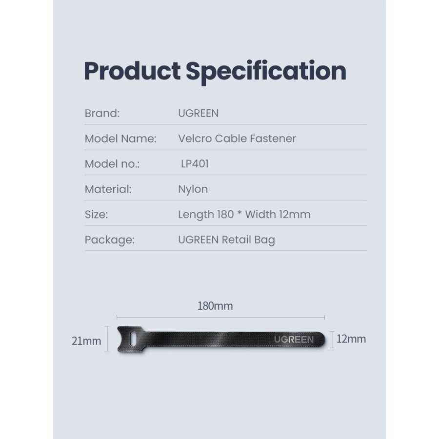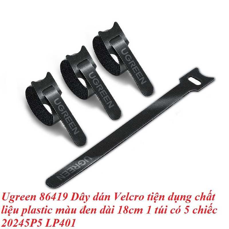 ✨Ugreen UG86419LP401TK 5 sợi 18cm màu đen Dây dán Velcro tiện dụng chất liệu plastic 1 túi có 5 chiếc 20245P5 - HÀNG CHÍNH HÃNG