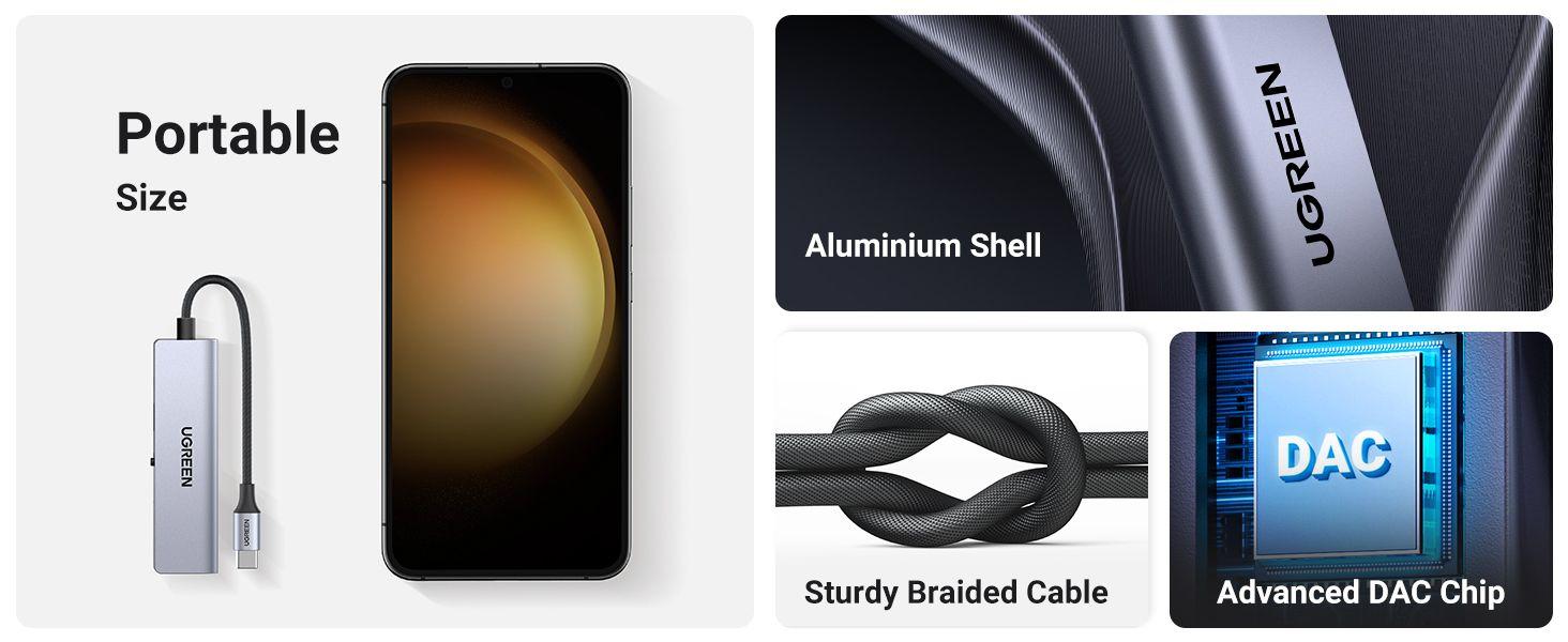2.Hi-Fi Sound Quality: Built-in 384KHz/32bit DAC Chip Type C Headphone 3.5mm audio Jack for stable, high-quality audio transmission, no current noise won't hurt your ears, The 3.5mm female port is compatible with CTIA and OMTP standard.