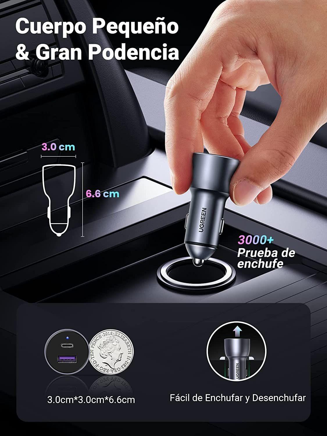 ✨Ugreen UG90797CD213TK PD45W + QC3.0 18W Màu XámTẩu Sạc nhanh cho xe hơi gồm cổng USB-C PD45W + USB-A QC3.0 18W - HÀNG CHÍNH HÃNG