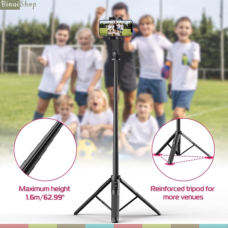 Thông tin sản phẩm: - Chiều cao max: 158cm - Thu gọn: 43cm - Cân nặng 550g - Chịu lực 1,5kg - Phụ kiện kèm theo gồm Kẹp điện thoại + Remote Mô tả sản