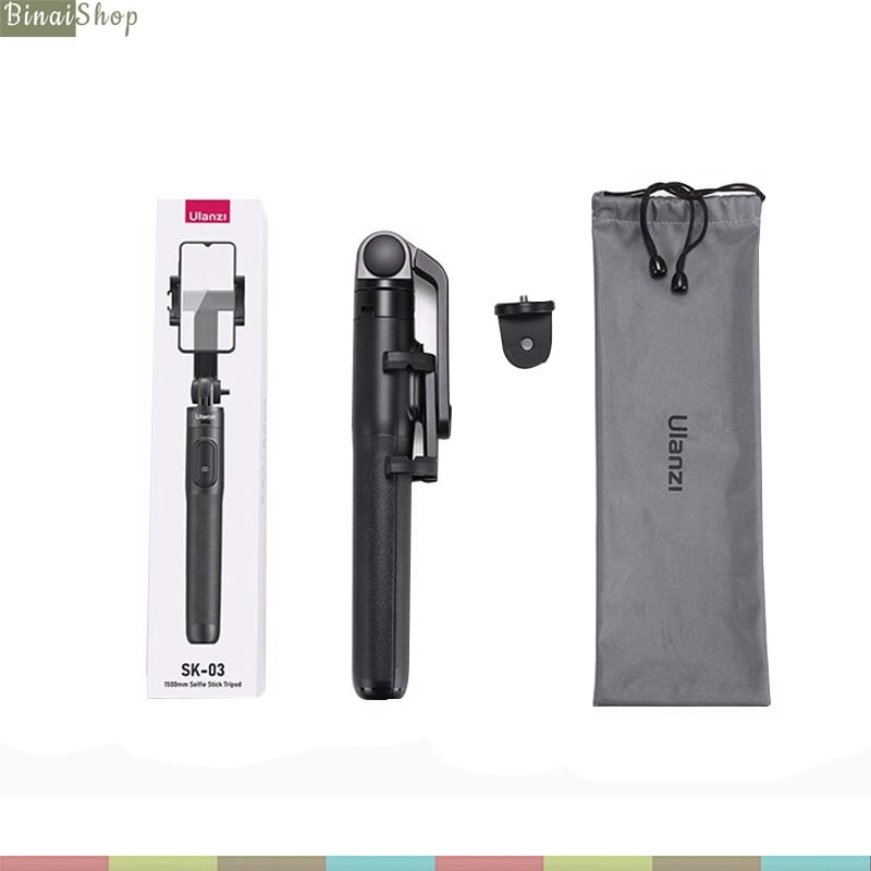 Ulanzi SK-03 là chân đế tripod thiết kế 3 trong 1: chân máy chụp ảnh điện thoại, gậy tự sướng và giá đỡ máy ảnh. Có thể điều chỉnh chiều dài tối đa lên tới 1.6m cùng với điều khiển từ