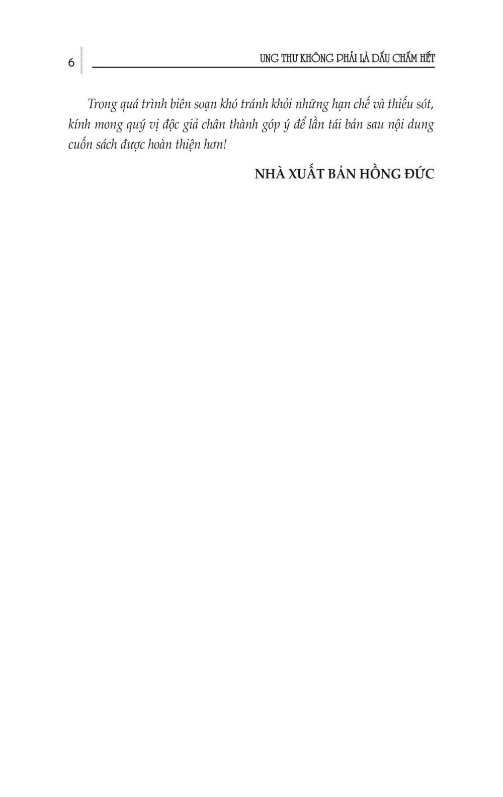 Bộ sách Ung thư không phải là dấu chấm hết gồm 5 quyển. Mỗi quyển là một sự tìm hiểu mỗi chứng bệnh ung thư khác nhau: Gan, Phổi, Thực quản, Đại tràng, tuyến vú;