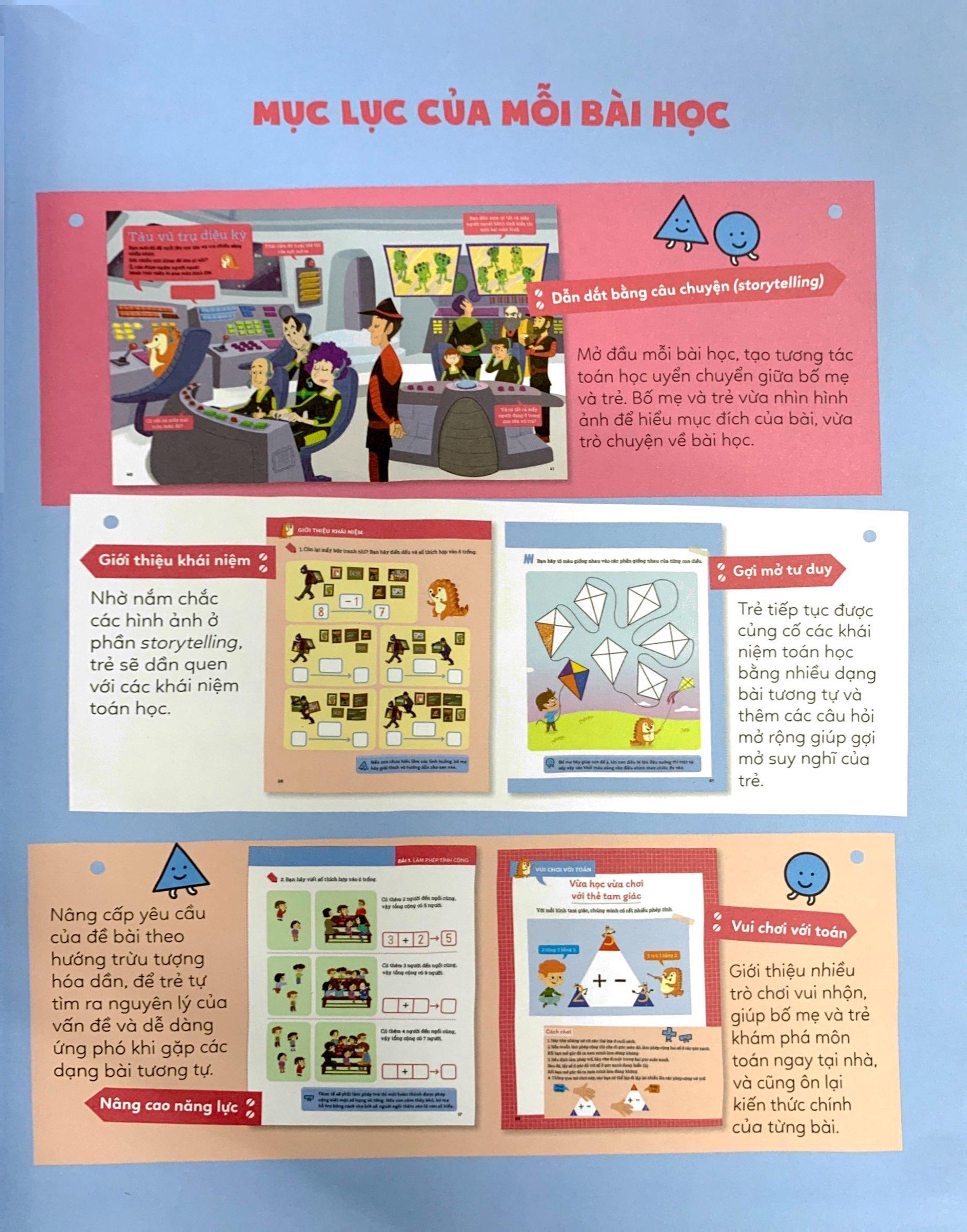 Có thể coi đây như tài liệu bổ trợ trực quan sinh động cho chương trình học trong trường, để trẻ tự tìm ra quy tắc của các vấn đề và đưa ra đáp số.